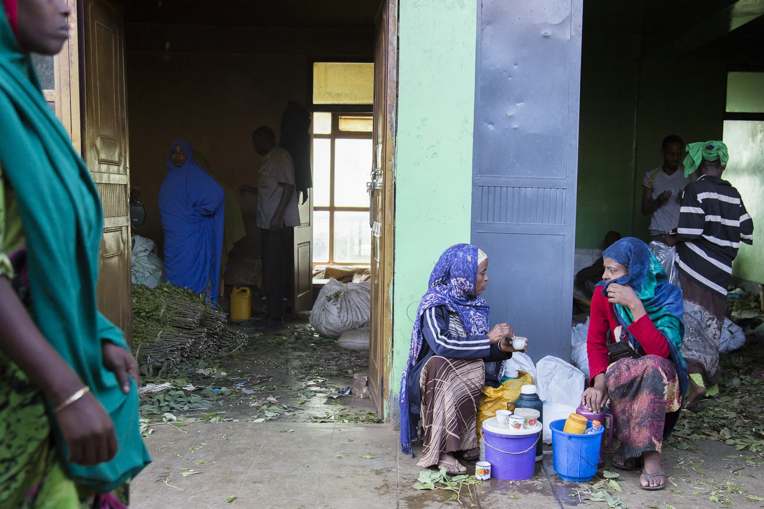 Awaday in Ethiopia’s East is the heart of the countries khat world. The cash crop is traded 24 hours a day, the busiest hours being from dawn to 9am. Bundles of khat are packed in makeshift sacks amongst other leaves for safety and the worth of the pristine harvest can sometimes be as high as $2000 USD a bunch. Trucks leave Awaday daily heading to destinations such as Djibouti and Somaliland to deliver the in-demand leaf. It is estimated that 25,000 kilograms of khat are sold daily in Awaday.