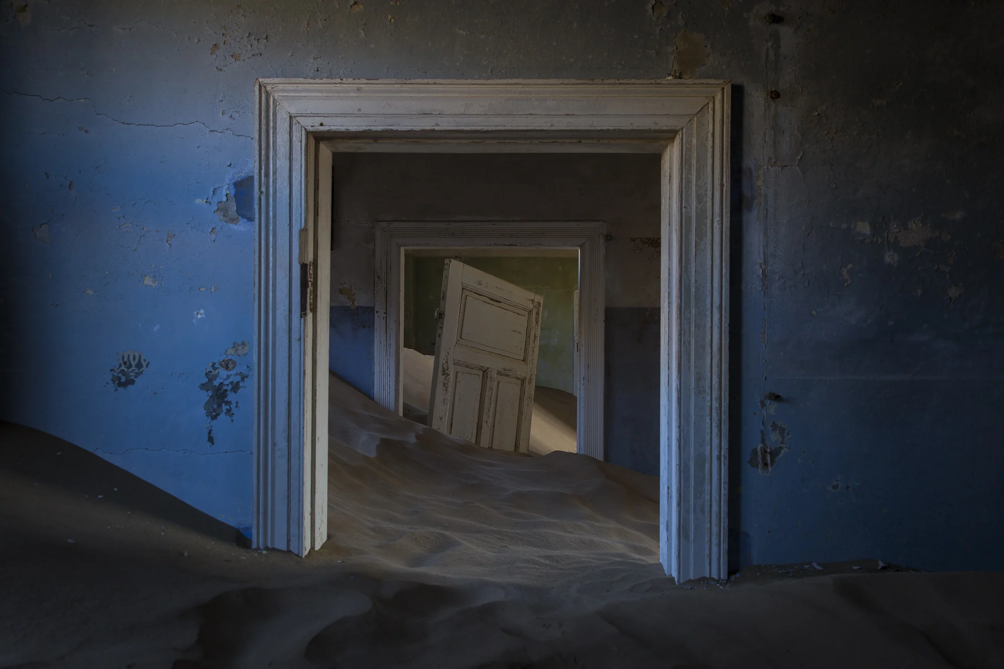 A German diamond mining town built in the middle of the Namibian desert in the early 1900's. It was a life of luxury. In the development of Kolmanskop, each house had running water and electricity, heck there was even a bowling alley, an ice factory and swimming pool in this town. After the decline in diamond prices and WW1, the town began to deteriorate and was ultimately abandoned by the mid 1950's.